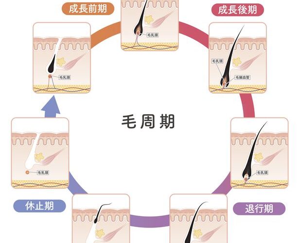 毛周期とは、毛の生え変わる周期と上でも述べましたが、毛周期は、サイクルとして「成長期→退行期→休止期」の3つに分類されています。 以下、毛周期を3つの段階に分けて、詳しくみていきましょう。